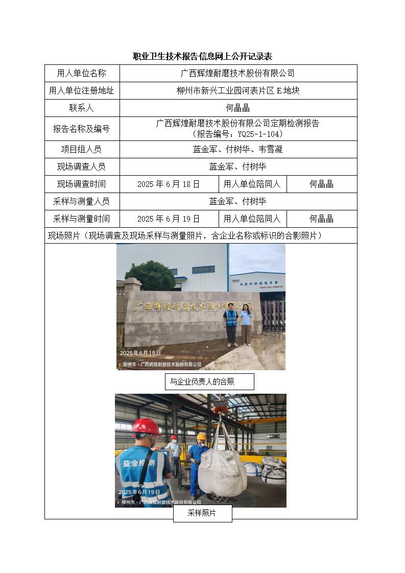 廣西輝煌耐磨技術股份有限公司定期檢測報告