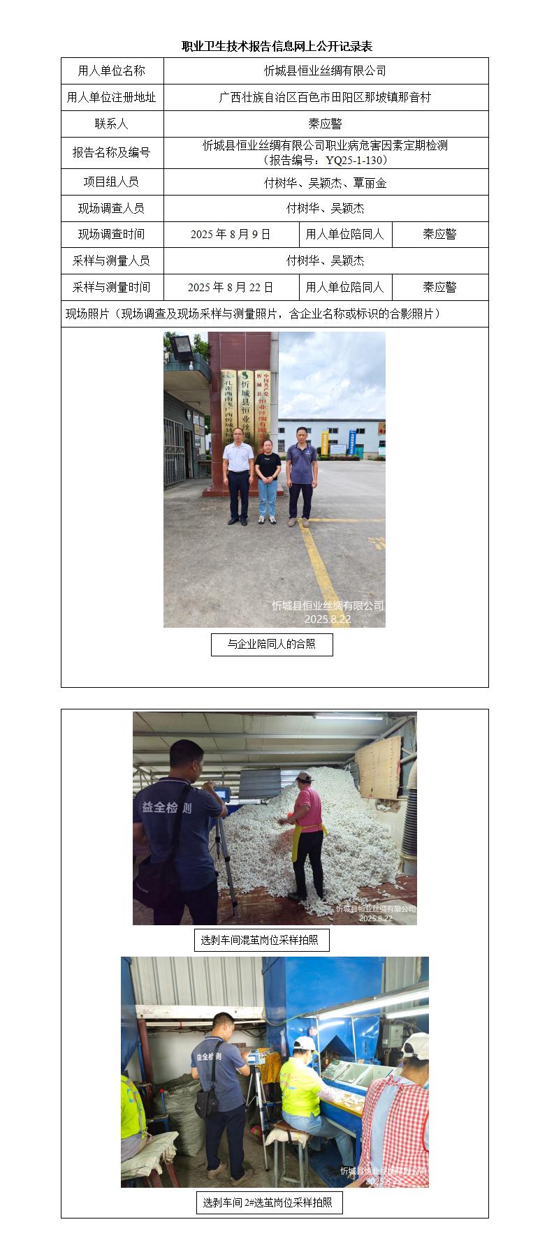 忻城縣恒業絲綢有限公司職業病危害因素定期檢測