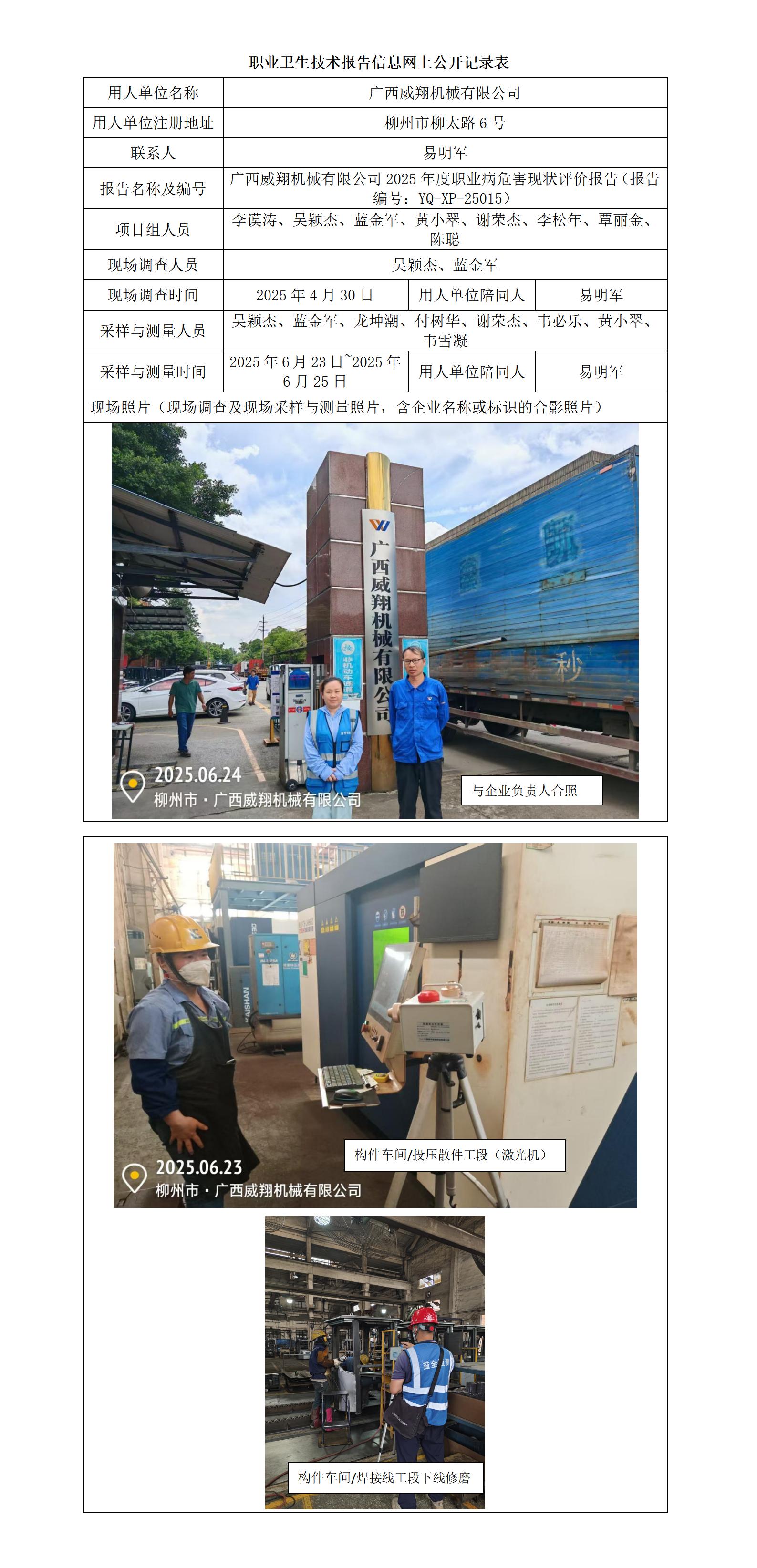廣西威翔機械有限公司2025年度職業(yè)病危害現(xiàn)狀評價報告